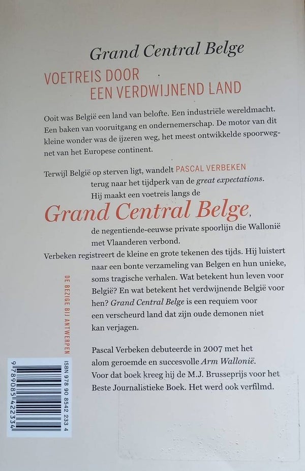 Ooit was België een land van belofte. Een industriële wereldmacht. Een baken van vooruitgang en ondernemerschap. De motor van dit kleine wonder was de ijzeren weg, het meest ontwikkelde spoorwegnet van het Europese continent. Terwijl België op sterven ligt, wandelt Pascal Verbeken terug naar het tijdperk van de great expectations. Hij maakt een voetreis langs de Grand Central Belge, de negentiende-eeuwse private spoorlijn die Wallonië met Vlaanderen verbond.