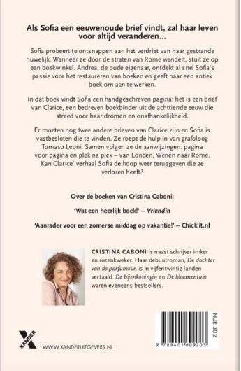 Sofia probeert te ontsnappen aan het dagelijkse verdriet van haar gestrande huwelijk. Wanneer ze door de straten van Rome wandelt, stuit ze op een boekwinkel. Andrea, de oude eigenaar, ontdekt al gauw Sofia’s passie voor het restaureren van boeken en geeft haar een antiek boek om aan te werken. Daarin vindt Sofia een handgeschreven pagina: het is een brief van Clarice, een bedreven boekbinder uit de achttiende eeuw. Als vrouw mocht Clarice haar vak niet uitoefenen, maar ze streed voor haar dromen, haar onafhankelijkheid en haar lot.
