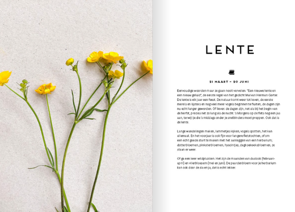 Neem je voor om elke dag naar buiten te gaan. Frisse lucht is gezond, bewegen is prettig en misschien is het wel echt waar: buiten maakt gelukkig. Noteer je wandelingen, fietstochten, natuurvondsten, lijstjes met plekken waar je ooit nog heen wilt allemaal in dit boek. Met tips om anders te gaan kijken naar datgene wat er altijd is. En met foto’s van onze eigen natuurvondsten, ter inspiratie.