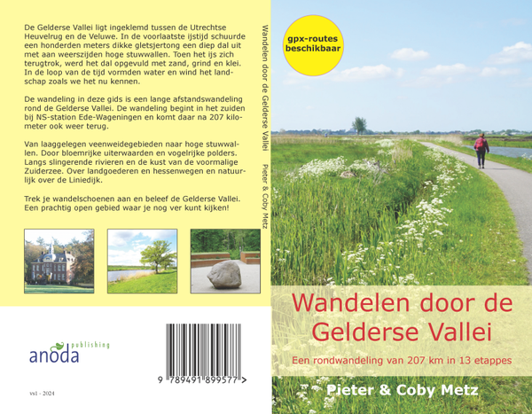 De wandeling in de gids Wandelen door de Gelderse Vallei is een langeafstandswandeling rond de Gelderse Vallei. De wandeling begint in het zuiden bij NS-station Ede-Wageningen en komt daar na 207 kilometer ook weer terug. Al lopende ontdek je de grote variatie aan landschappen die de Gelderse Vallei rijk is. Van laaggelegen veenweidegebieden naar hoge stuwwallen. Door bloemrijke uiterwaarden en vogelrijke polders. Langs slingerende rivieren en de kust van de voormalige Zuiderzee. Over landgoederen en hessenwegen en natuurlijk over de Liniedijk. Onderweg passeer je kastelen, eeuwenoude boerderijen en kom je door dorpen en steden voor een welverdiende pauze.