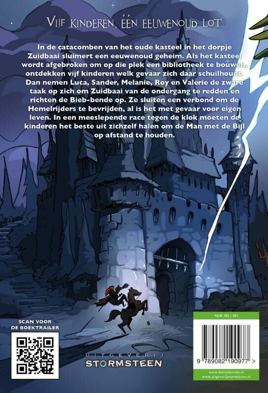 In de catacomben van het oude kasteel in het dorpje Zuidbaai sluimert een eeuwenoud geheim. Als het kasteel wordt afgebroken om op die plek een bibliotheek te bouwen, ontdekken vijf kinderen welk gevaar zich daar schuilhoudt. Dan nemen Luca, Sander, Melanie, Roy en Valerie de zware taak op zich om Zuidbaai van de ondergang te redden en richten de Bieb-bende op. Ze sluiten een verbond om de Hemelrijders te bevrijden, al is het met gevaar voor eigen leven. In een meeslepende race tegen de klok moeten de kinderen het beste uit zichzelf halen om de Man met de Bijl op afstand te houden.