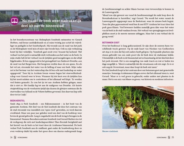 In Wandelgids Veluwse beeklopen bundelen auteur Wim Huijser en routemaker Rob Wolfs zeventien routes langs de Veluwse bekenstelsels. Van Hattem tot Renkum en van Barneveld tot Velp. De routes zijn gemiddeld 11 kilometer lang. Terwijl je wandelt, ontdek je niet alleen bijzonderheden over het gebied en de aanwezige flora, maar ook over het ontstaan van de sprengen, de betekenis van het zoetwaterreservoir onder de Veluwe en de bijzondere werking van beken en watermolens van weleer.