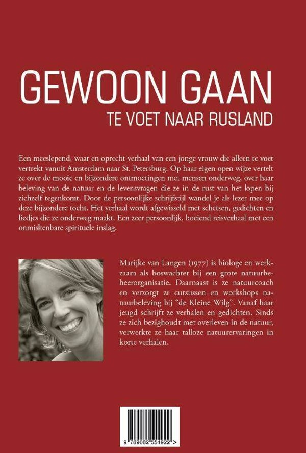 Een meeslepend, waar en oprecht verhaal van een jonge vrouw die alleen te voet vertrekt vanuit Amsterdam naar Sint Petersburg. Op haar eigen open wijze vertelt ze over de mooie en bijzondere ontmoetingen met mensen onderweg, over haar beleving van de natuur en de levensvragen die ze in de rust van het lopen bij zichzelf tegenkomt. Door de persoonlijke schrijfstijl wandel je als lezer mee op deze bijzondere tocht. Het verhaal wordt afgewisseld met schetsen, gedichten en liedjes die onderweg maakt. Een zeer persoonlijk, boeiend reisverhaal met een onmiskenbare spirituele inslag.