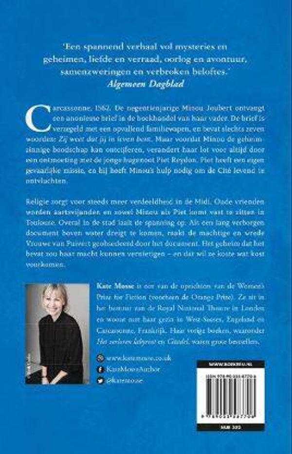 Carcassonne, 1562. De negentienjarige Minou Joubert ontvangt een anonieme brief in de boekhandel van haar vader. De brief is verzegeld met een opvallend familiewapen, en bevat slechts zeven woorden: Zij weet dat jij in leven bent. Maar voordat Minou de geheimzinnige boodschap kan ontcijferen verandert haar lot voor altijd door een ontmoeting met de jonge hugenoot Piet Reydon. Piet heeft een eigen gevaarlijke missie, en hij heeft Minou’s hulp nodig om de Cité levend te ontvluchten.